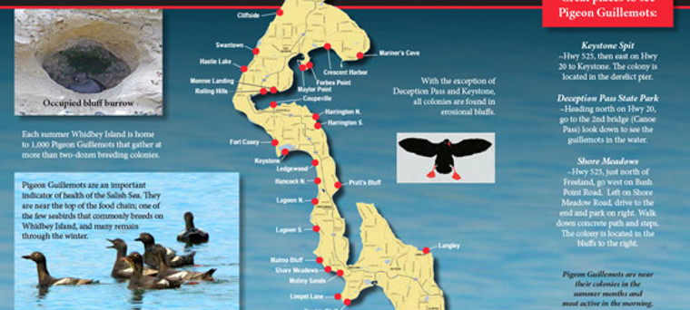 More information on Pigeon Guillemots can be found on both the Guillemot Research Group's website and Facebook pages. The Guillemot Research Group is maintained by GRG volunteers, and is not affiliated with Island County MRC or any other Island County government agency.