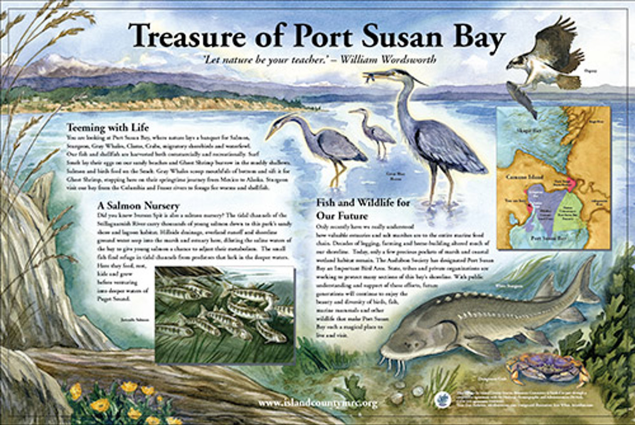 To raise awareness of the assets of our nearshore and to instill an ethic of stewardship in residents and visitors, we have installed interpretive signage at 18 locations along the Island County shoreline.